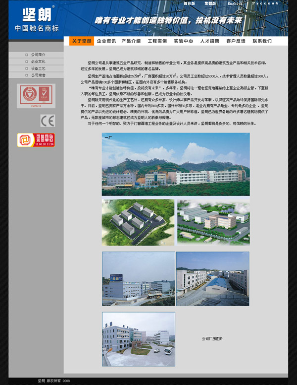 堅朗生產(chǎn)基地占地面積超過25萬M2,廠房面積超過20萬M2。公司員工總數(shù)超過5000人,技能管理職員數(shù)目超過500人。公司產(chǎn)物遠(yuǎn)銷100多個國度和地域,在國表里設(shè)有多個販賣服務(wù)機(jī)構(gòu)。