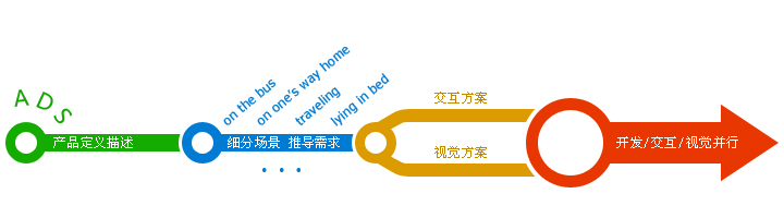 從源頭的戰(zhàn)略層面上建立了統(tǒng)一的認知,我們接下來開展的工作就有根據(jù)了。既然核心是解決“移動場景聽歌“的問題,我們必須首先弄清楚什么是”移動場景“?移動環(huán)境和PC環(huán)境差異甚大,碎片時間的使用更為突出。用戶一天是怎么活動的呢?每次拿起手機聽音樂都是什么時間?上班的公車上、走路、晚上睡覺前?在這些點上用戶都會做些什么?簡單的腦暴可以羅列各個可能的使用場景,但還比較粗糙。場景的構(gòu)想需要建立在高度的認知上,這時候用研的切入顯得相當關(guān)鍵,用戶特征、喜好、使用習慣…對用戶越了解,場景就越能貼近真實、越能發(fā)現(xiàn)更多的細節(jié)。這些都為后續(xù)的設(shè)計決策提供了有力的依據(jù)。