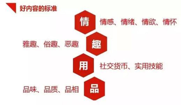 拆解出來,內容運營的四要素:1、方式:產出內容和重組內容;2、目的:滿足用戶內容消費的需求;3、效果:使用次數和品牌認知度;4、能力:策劃和文案。